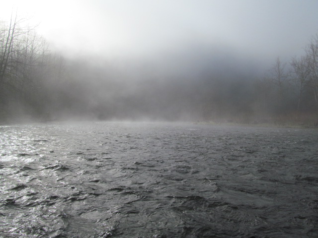 Wilson and I floated the EAST Branch of the Delaware river. This trip has been on my to-do list for a long time but with persistent drought conditions it has been put off. We floated the better part of the EB putting in not far from where the Beaverkill enters the river. Start time on the river was 7am under the thick fog. The water was gin clear and cold. I was really hoping for quality over quantity on this trip thinking the less pressured EB might have some big stupid fish. We fished our arms off and by the time we took out at Fireman's Field in Hancock we were only able to scratch out a handful of 12" Brown Trout and a few small SMB. The water looked very fishy, and we hit some killah spots ! Only boat on the EB (that we saw) today. A beautiful river as it runs along the base of a mountain just about the entire length. Seemed like a tributay entered the river every mile or so. Start time temp was 34*, take out temp was 65*.