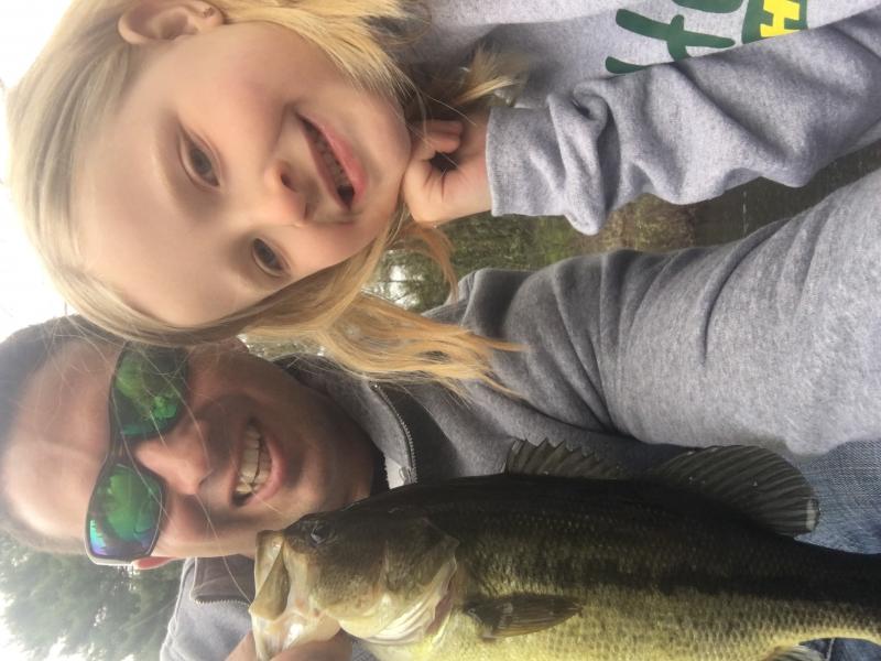 Had the itch to get out so i took the fam and hit the spot water at three. Was getting blown around a little and temPs were much cooler at 55 degrees. Caught a chunky bass on a night crawler then tried something new. Used a black spinnerbait with a single willow tale blade that was charcoal gray. Caught a three pounder a long with a two pounder on it. I have never used this combo and it worked out well. Heres a few pics. The stepdaughter had a blast as usual catching sunnies and a perch. Great day on the water! 5 bass total 1 perch and a pumpkinseed sunnie