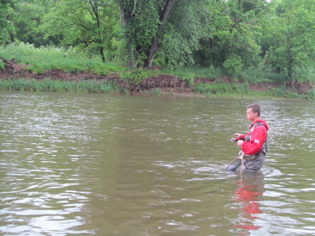 Hit the river today with Andy and we did decent. Caught three fish total, one of which we didn't land. The river was higher than normal after the rain, and dirtier than usual. We were throwing black hair jigs for a good hour or 2 with no bites. I decided to go bright and flashy and that's when the bite turned on. We could have caught them all day at the one spot but the rain ruined our day. Hope everyone else did good, and hope to see you guys on the water!