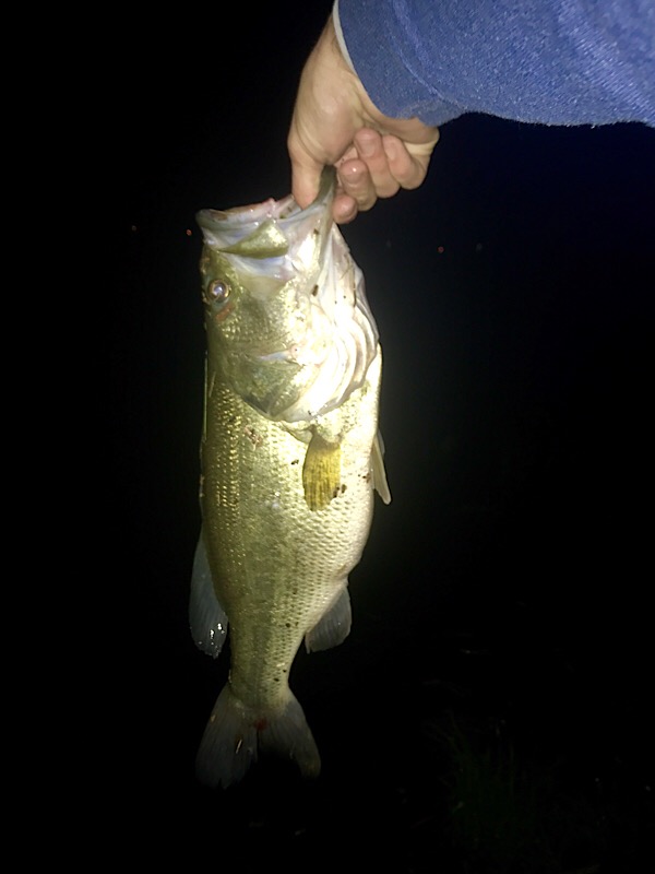 Drove up to Newport RI on Friday night. After multiple cups of coffee to keep me awake during the long drive I found that I couldn't fall asleep. With everyone else in bed there was only one thing for me to do...go fishing! I got to the Reservoir down the street from my Mom's house Around midnight. By 12:30 I had caught a new PB, my first LMB over 20"/5 lbs. I didn't have a scale with me but based on a shoe that is exactly 12" Long I estimated the fish at 21". Fish was caught on a 1/4 oz green pumpkin jig with a lizard trailer. It was a great weekend of fishing!