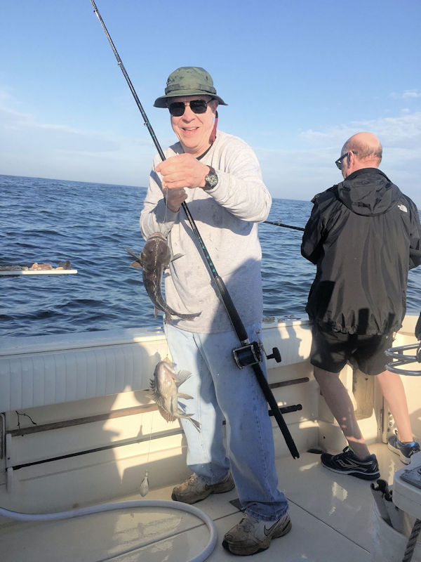 Paul had the Frank Zoltansky charter on board today. Filling out Frank's crew were Chris, Joe, Tom, Bob & Gary. Paul got right on the big Seabass today and the boys got their early limit. We finished the day Inshore trolling Spoons in search of the elusive mid day, bright sun Striped Bass which proved to be quite elusive today. Otherwise it was a beautiful day to be on the water with a great bunch of happy anglers.