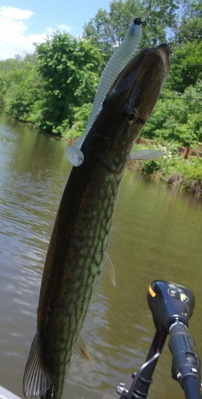 Launched the boat on the canal at Amwell and cruised up to the high tension lines (which were making sizzling sounds) throwing a keitech under over hangs as there wasn't much structure present. Picked up one dink lmb that way and figured I could cover more ground trolling the keitech along the sunny bank. Got two better lmb's, two slime darts, and a yellow perch on the keitech before turning around at Blackwells Mills. Put on a big chartreuse buzzbait with a paddle tail yum dinger and trolled it along the sunny side back down to the power lines looking for a basking musky with no luck. Switched to a chartreuse and white gold willow/silver colorado blade spinner bait with a keitech trailer for rest of the troll back down to Amwell. Had two fish on that shook the hook halfway to the boat before I could see them. Pulled the boat at the Amwell bridge and threw the spinnerbait around from shore picking up a decent snot rocket to end the day. Water was clean, turtles were EVERYWHERE, and best of all NO TICKS!!!!!