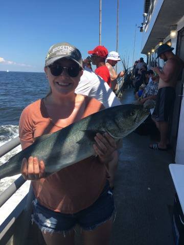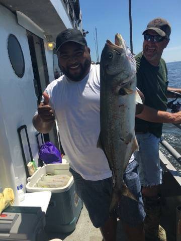 It looks good for this week. The big Jamaica will be sailing at 7:30 a.m. everyday this week including Monday and the 4th of July. Family Fun Trips sail 4:30 in the afternoon starting Sunday and fishing and fireworks on the 4th from 5 p.m. till 10 Monday 7:30 AM Bluefish 4:30PM Family Fun Fluke & Sea Bass Tuesday July 4th 7:30AM Bluefish 5PM Fishing and Fireworks Tilefish Our next tilefish trip sails 10 p.m. July 9th. There is space available call for reservation information For further information call 733-528-5014 Available for Large Charters