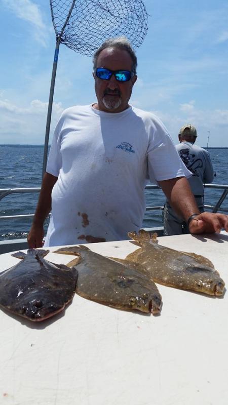 Hey gang, Capt. Scott here. We did not fish where we fished yesterday with the hard southerly wind but we still fished the ocean and picked away at some nice keeper fluke in the afternoon. Roy was high hook with 3 nice keepers. He was using sardines for bait... See you guys tomorrow, Tuesday at 5:30 a.m. Thx., Capt. Scott