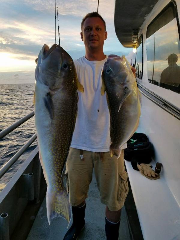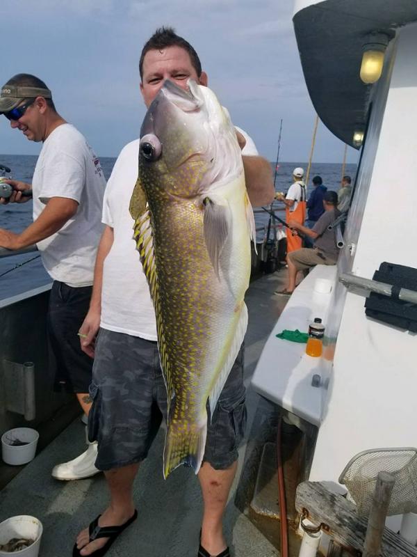 -7/17 Tilefish Report- Another Good Tilefish Trip We had a very good tile fish trip on Monday July 17th. We had many limits, with a good number of fish from 15 to 25 pounds and a few rosefish mixed in. The pool winner was: Mike Xenakis from Middletown New Jersey with a 25 pound tile fish We caught fish just about everywhere we went. It looks good for upcoming trips. There is space available on our next trip that sails 10 p.m. Sunday night July 23rd. For reservations in information call 732-528-5014 Wednesday 3/4 Day Bluefishing 7:30am - 2:30pm Family Fun 4:30pm - 8:30pm Thursday 3/4 Day Bluefishing 7:30am - 2:30pm Fishing & Fireworks 5:00pm - 10:00pm Friday 3/4 Day Bluefishing 7:30am - 2:30pm Night Bluefishing 7:30pm - 2:00am For further information call 732-528-5014 Available for Large Charters