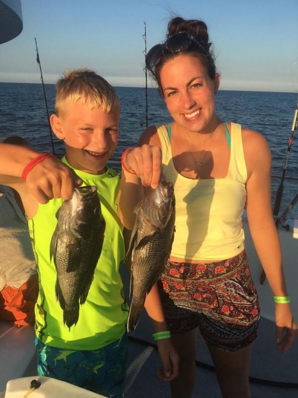 Fishing was VERY GOOD today even though the BLUES did not show up. We had lots of action with SEA BASS and also caught LING and some FLUKE. There were a lot of Cownose Rays swimming around the boat for a good part of the day. Everybody had a great time and enjoyed fishing in the ocean.