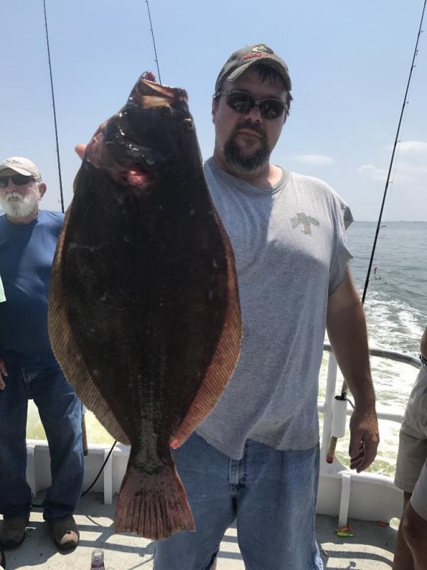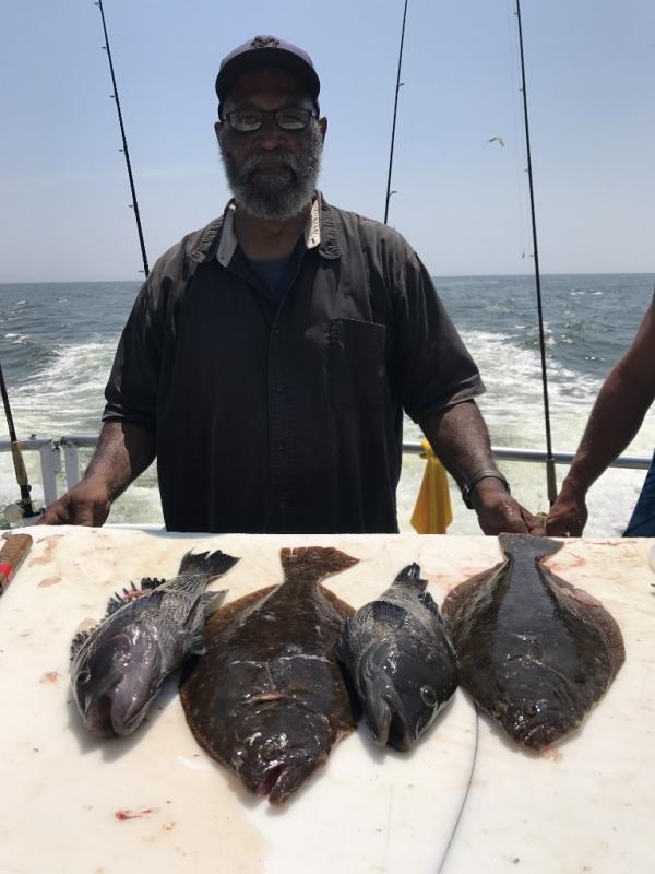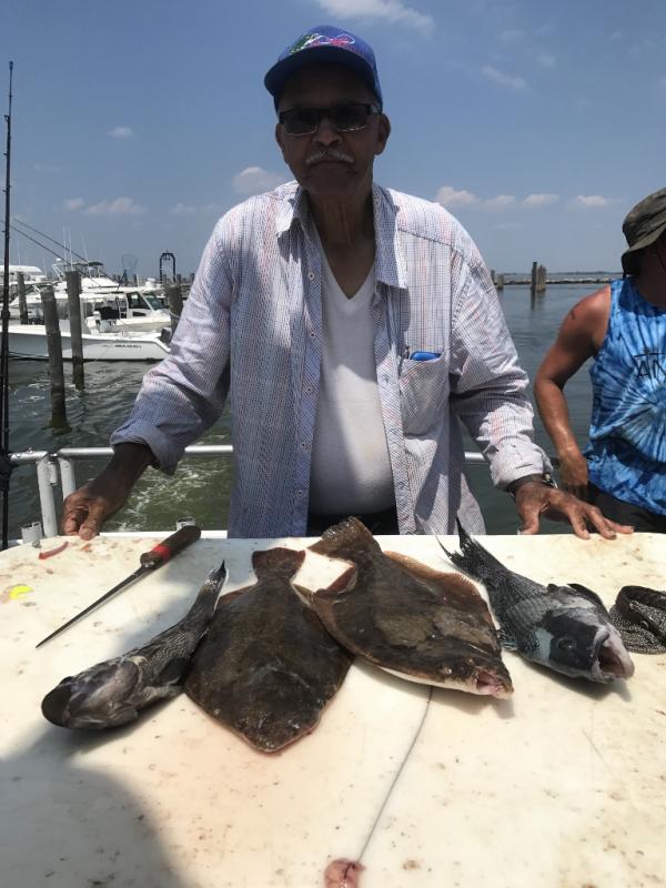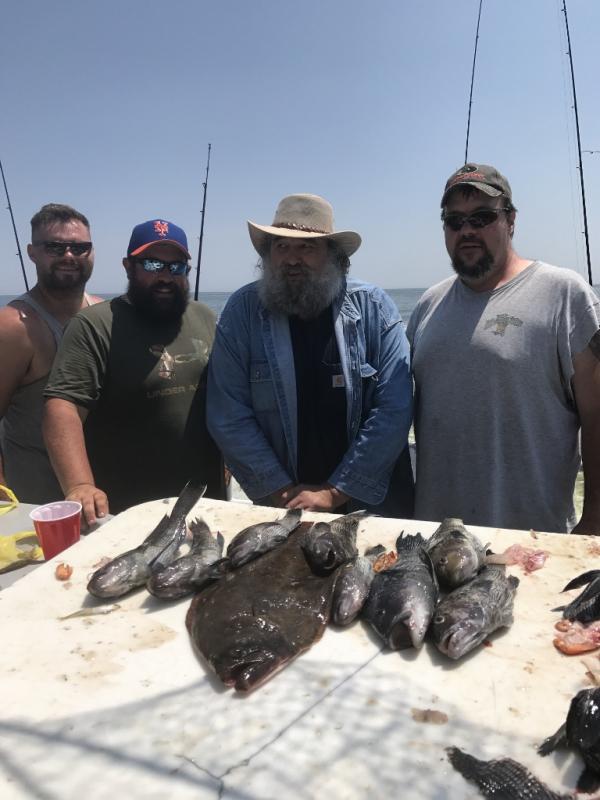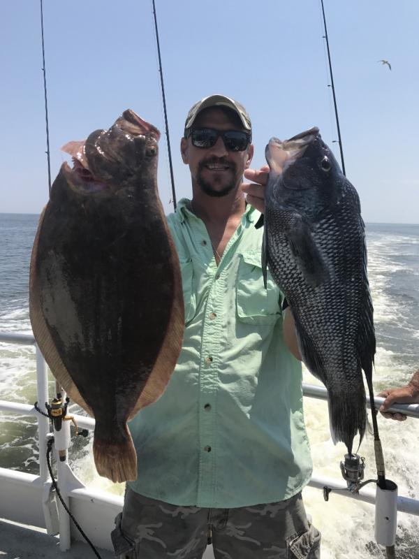 Nice day ocean fishing again today with jumbo sea bass and a good amount of fluke in the mix. Archie had our first limit with others on board. Bert was down with the boys from Coal country PA and hr had the pool. They will be back on board tomorrow. Some sea bass over 20 inch.