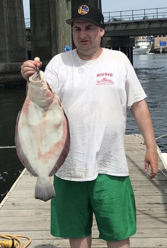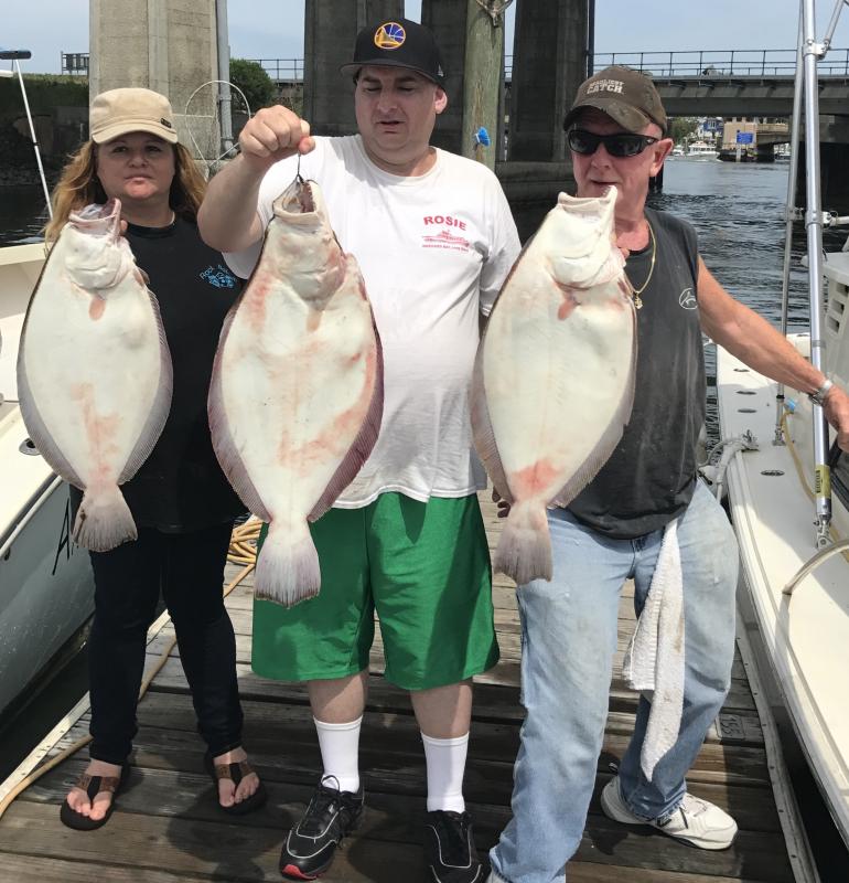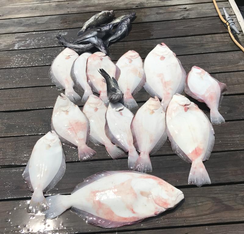 Had Dave, Bob, and Beatriz out today with nice weather. Only worked a couple areas today. Shorts weren't too crazy today but we had more keepers than we've had and a bunch of quality fish. Dave was HH today and had the largest at 7.5lbs and we also had a pair of 5.5lbers. Had keepers on everything today. One color didn't seem to have much of an advantage over another. Wound up with 13 keeper fluke, just a few short of our boat limit, and some nice seabass.