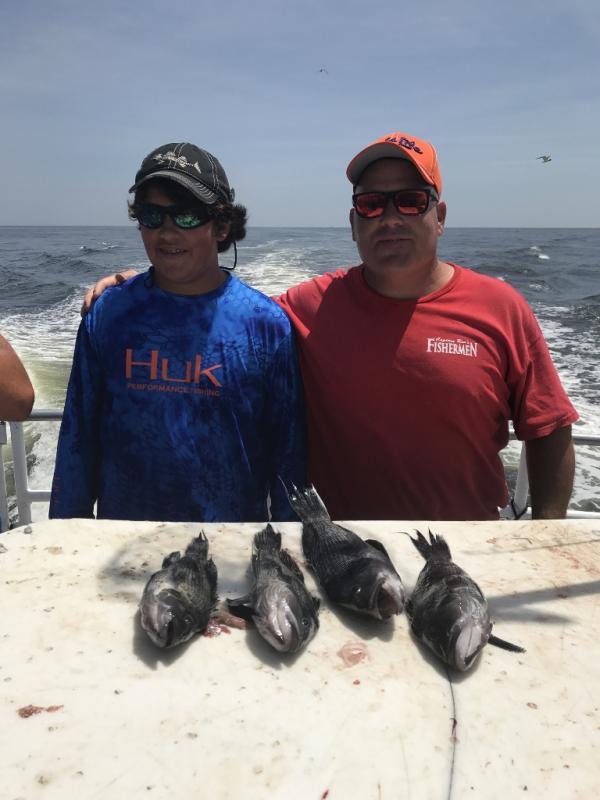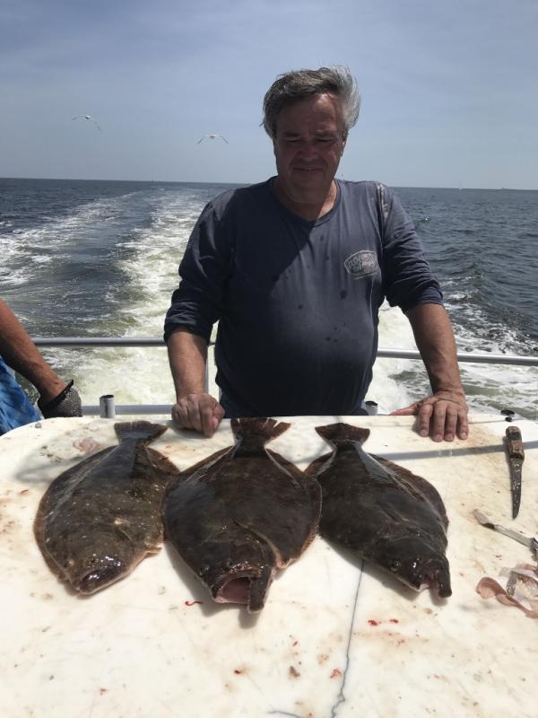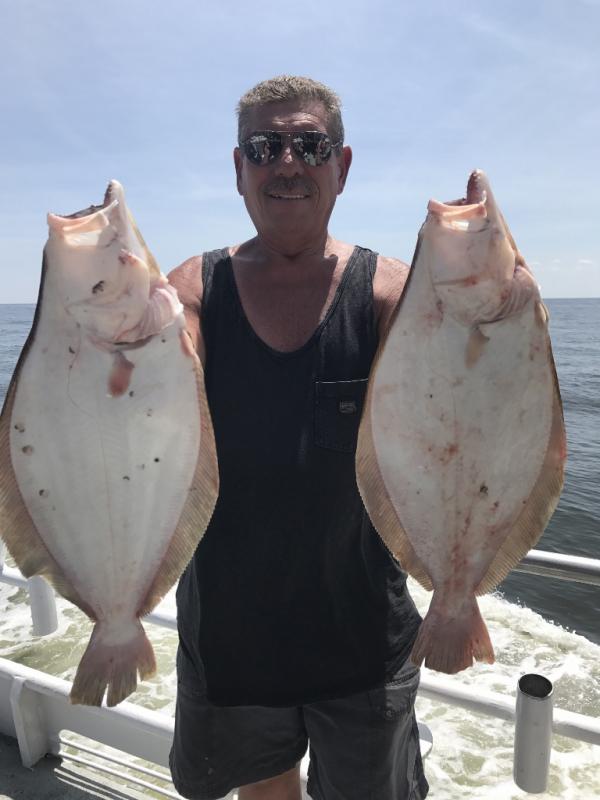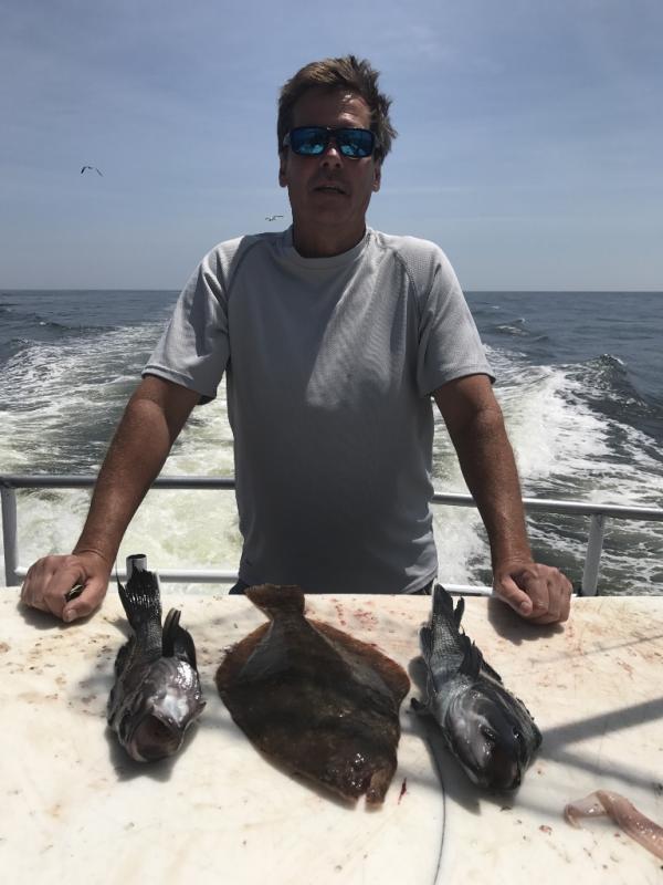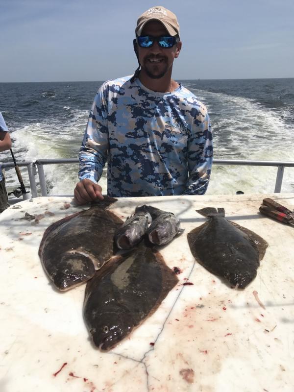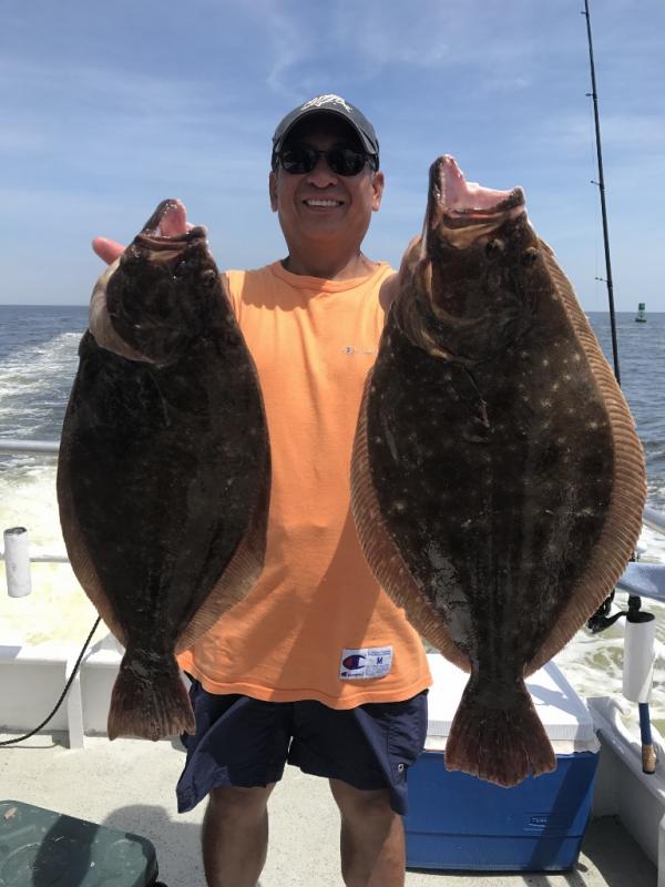 We are fishing offshore on rough bottom and had another good catch of ocean fluke with jumbo hump back sea bass. Limits of both species, A pair of 7 pounders shared the pool. Jigging was best with gulp and spearing. It was not hot on the water today.