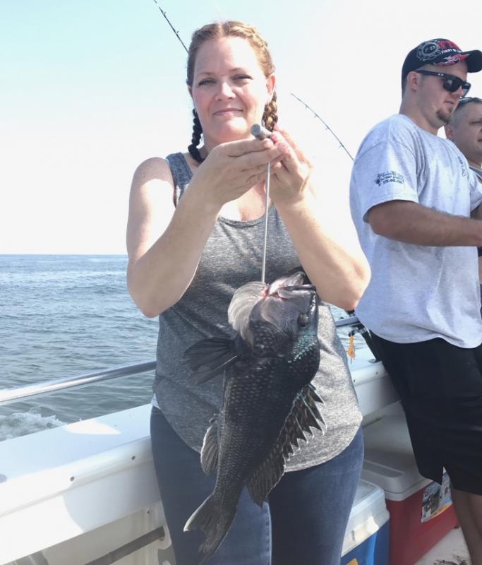 Today aboard the Down Deep we ran another 6 am Jumbo Fluke & Seabass trip for Becky and family, a big fishing crew. The guys and girls were provided with action all day consisting mostly of Jumbo Seabass that wouldn't quit. Fluke were mixed in keeping rods bent, fish flying over the rails and keeping everyone aboard happy. Thanks Becky for sailing with us, looking forward to our next trip and all others who continue booking rough bottom Jumbo Ocean Fluke, Ling, Cod, winter Flounder & fall Jumbo Striped Bass, Tog & Seabass trips going forward at a rapid pace. Back at it all weekend. Don't miss the next open boat trips -