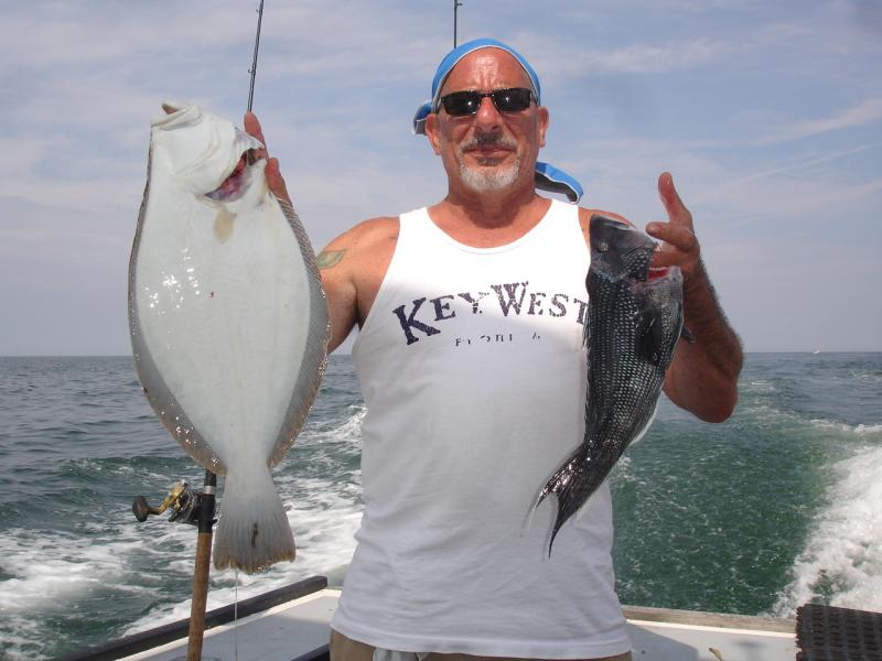 (SAT) Today we ran an open boat Fluke trip and the AM was tough due to no drifting conditions, it was like being anchored so we power drifted which helped out a bit. We needed to find a drift, so we took a steam to another area and had good movement and starting to catch the Fluke. The keepers and shorts started to come up on every drift with Sea Bass as well. Danny and Billy both had four keepers each(orl) and Steve had his limit also. We have our Fluke dates posted in the open boat forum and our facebook page as well.