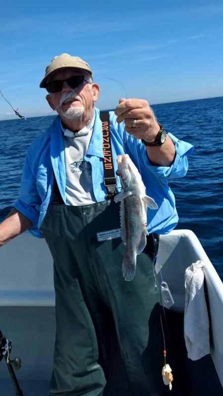 After we put a decent amount of Whiting/ling in the box, we switched over to Haddock/Pollock. Bounced around picking Haddock through the shorts, some real nice Pollack and Cusk went into the box. Through back way to many fat Cod Fish.