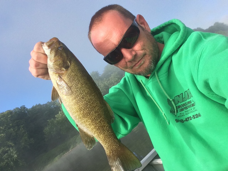 Smallies were in a feeding frenzy this morning! Got 7 of them to the net with the biggest 1 coming off my hook due to a sick aerial jump! They were kinda small in my opinion, 12-16 inches on average! The fish I lost was around 20! Oh well, that's the way it goes sometimes! Still some good action overall with most fish falling for the live bait in the jig again!!!