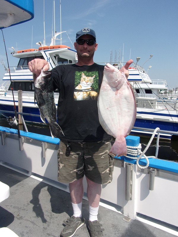Our first drift in the AM turned out to be the drift of the day. Vic had the Hot hand jigging in the stern and put his 3 fish in the cooler right off the bat. Scotty, Moe, Chriss V and a couple others landed two while others caught some very nice Sea Bass and short Fluke.