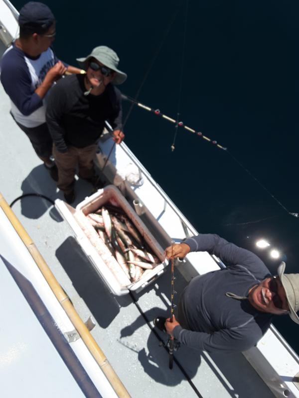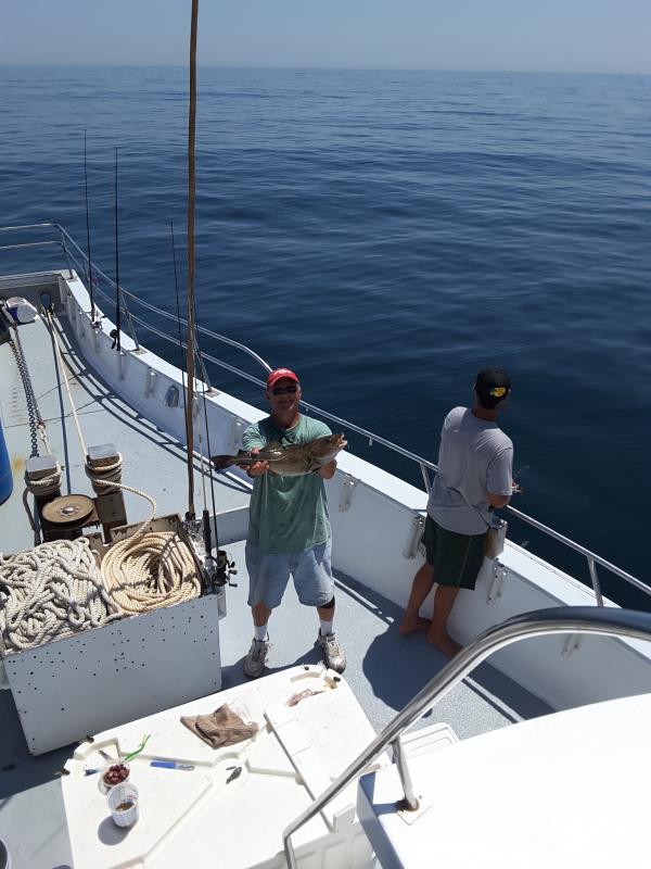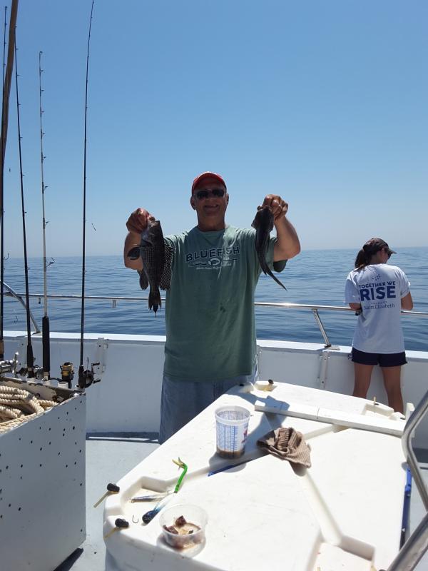 It was a VERY VERY GOOD day of fishing. We had BLUEFISH, MACKEREL, SEA BASS, LING and CODFISH. We spent part of the morning limiting out on SEA BASS and catching all you wanted along with some LING and some BLUEFISH. We spent the afternoon catching all the MACKEREL you wanted along with some more SEA BASS and some CODFISH. The MACKEREL were on Run Off hammer jigs and bait and the SEA BASS were on bait.