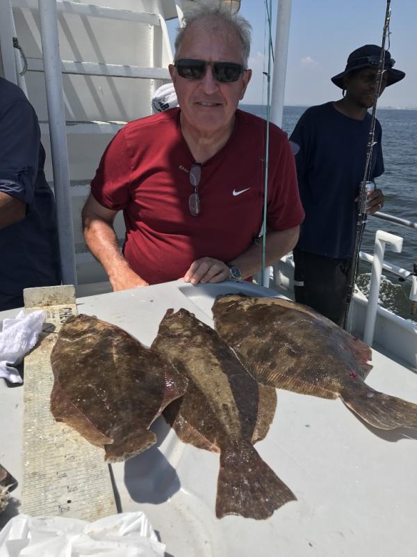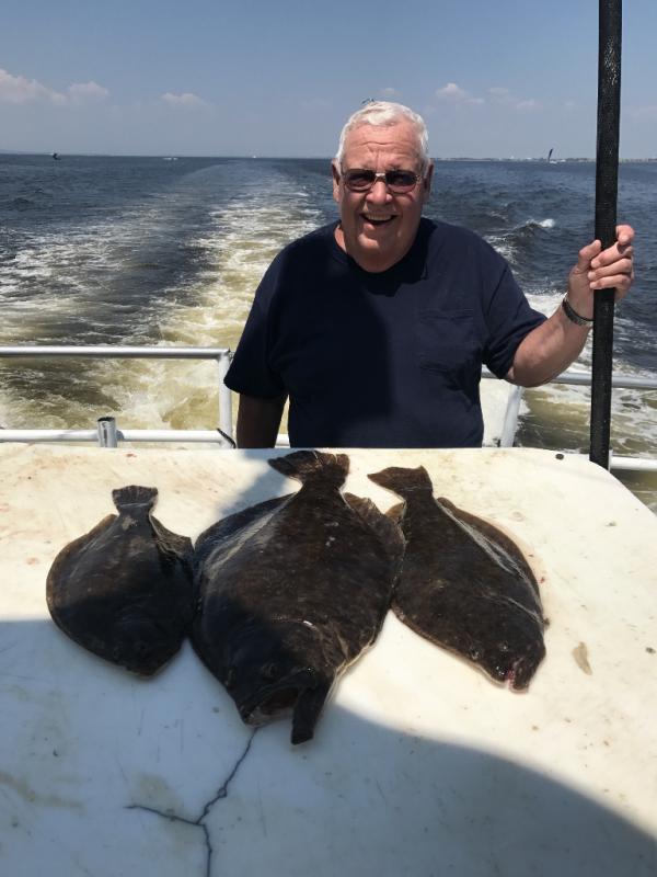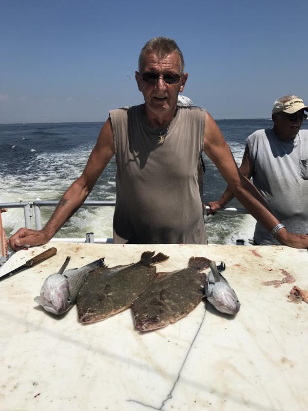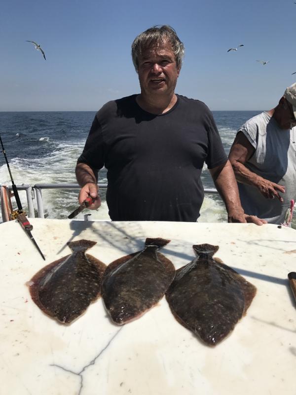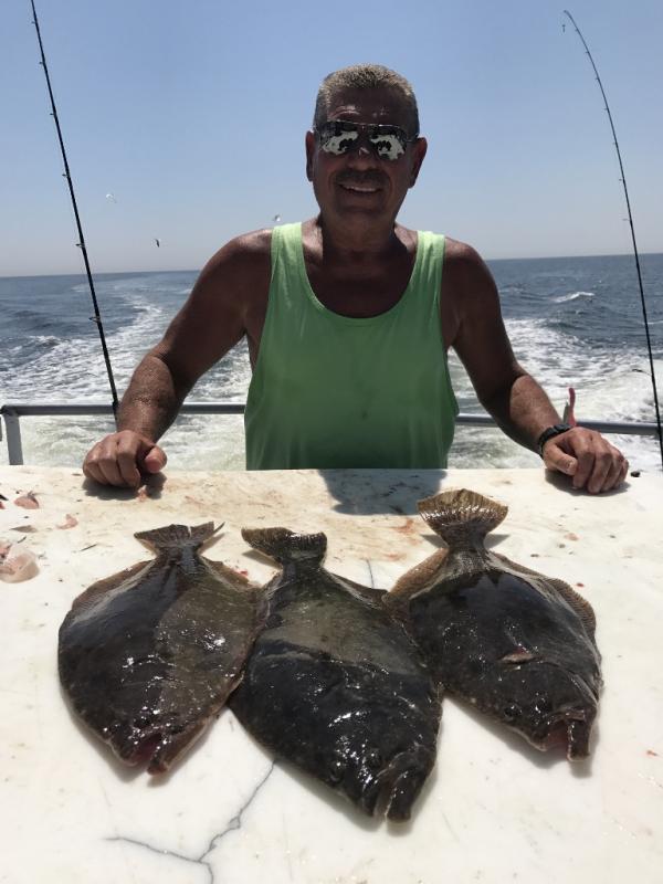Once again the fluke were hungry when we stopped the boat. A ggod drift to start the day with bigger fluke. Bill karg from Millington Had the pool and the lead in the monthly with a nice 8# 9 oz fluke. He and his brother Tom had 12 keepers ORL ' Bill was the final winner last year of our big pool. Jor Jacob from Old Bridge had his limit and PB at 7#.