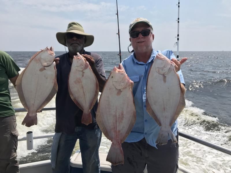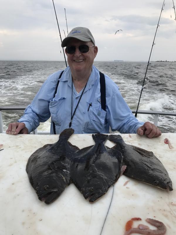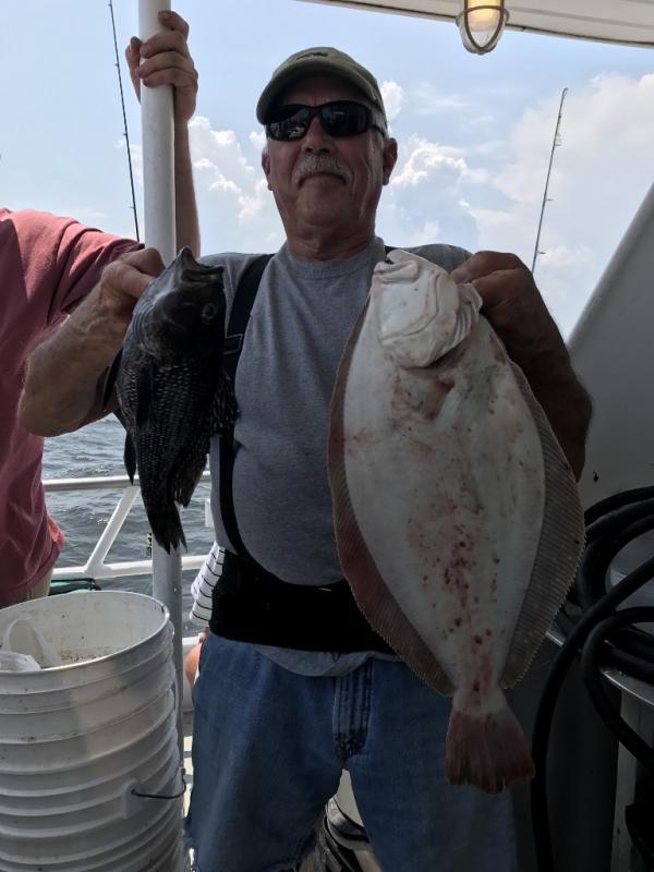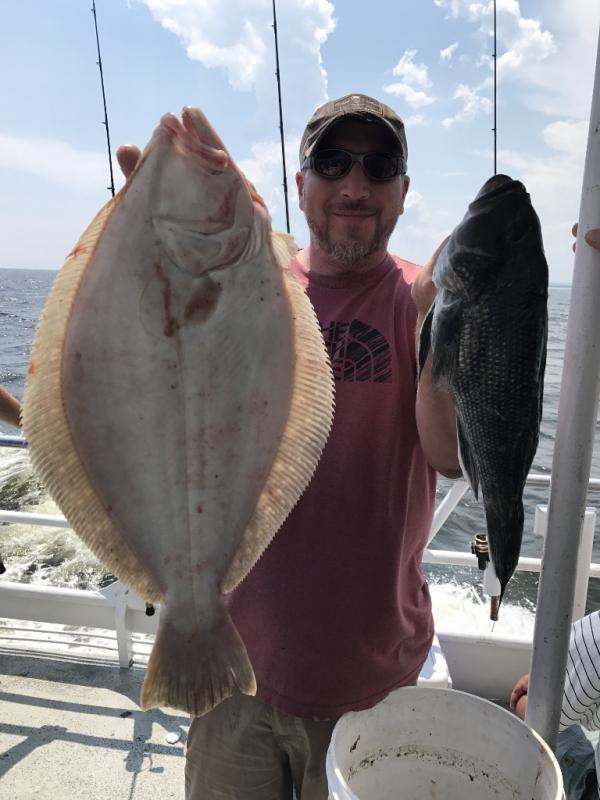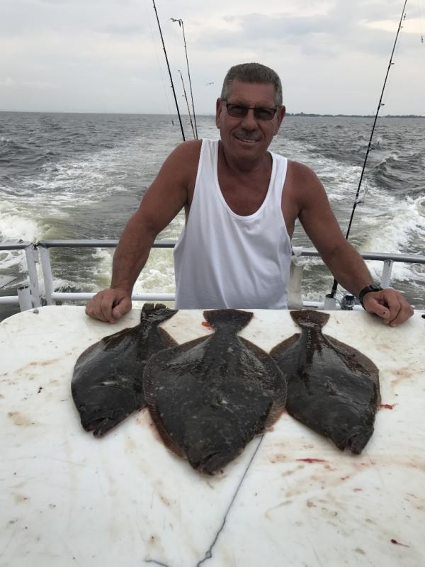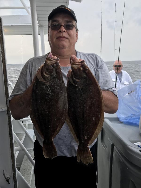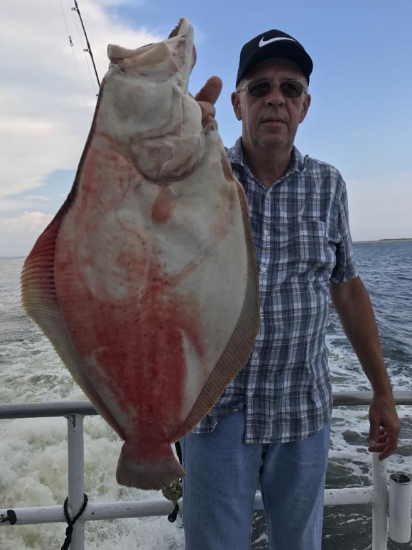 We had some nice fluke again today with limits but very little drift with no wind till the end of the day. The bigger grubs were better today. Ray was out 2 days in a row with his limit again and just missing the pool. George from PA had a 25 inch 6 pound pool fish.