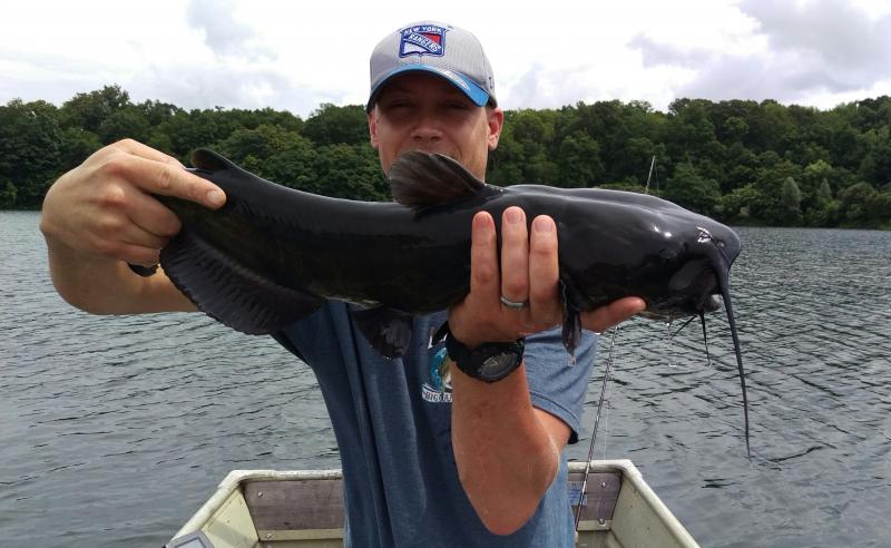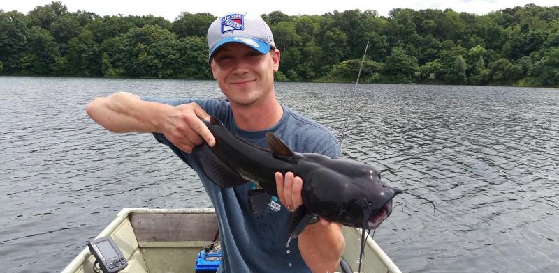 Haven't had time to post recently but have been fishing a bit. Last 2 weeks I managed a couple trips. First was a trip back to my bass harassin spot with pops. Carried the boat and gear in half the time it took me solo. Found some decent bass action but no lunkers. Catch of the day was an unusual catfish I battled. Had drag peeling and at one point got me wrapped around a stump. Literally had to motor 360 degrees back around the stump to get it loose. When I finally landed it I noticed the fish was jet black from snout to tail. Even the inside of his mouth was black. Never saw one like that, pretty cool!!