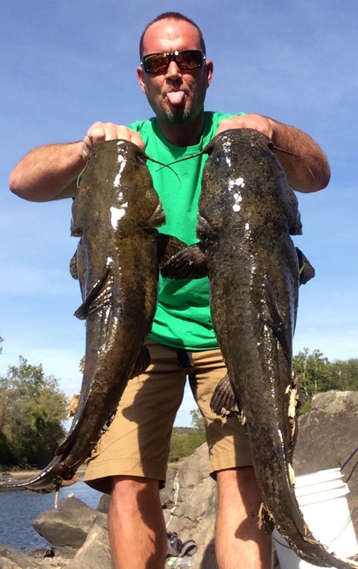 Made the switch to Catfishing around noon. The bite started out slow but then "BOOM", it happened. Here a Flathead, there a Flathead and then a double header Flathead. These 2 Invasive bastards hit about 15 seconds apart, good times! ![]() So I'm reeling in the 1st fish from the double header, the other rod goes off. This is a much larger fish. I put the rod with the smaller fish in between my legs so I can play with the bigger fish. Head shakes, drag ripping runs, damn thing didn't want to come in. It wasn't the biggest Flathead by any means but man was she pissed. Once they see the sunlight they get really, really angry. Ok, so I land the big one! 32 inches or so, about 15 lbs! The other rod is still dancing between my my legs and I land them both without breaking anything. The other fish is around 27-28 inches and 8+ lbs give or take. Ya had to be there to see this freak show live. It was just comical trying to keep both rods under control without falling and splitting my head open on the jagged rocks, LOL! Good times!!! Total fish for the trip was, 5 Flatheads, 2 @ 7-8 lbs, 1 @ 15 lbs possibly bigger, 2 cookie cutter Flatheads @ 3-4 lbs and 2 cookie cutter Channels that need to go grow some more! I didn't get much of a fight out of the Channels, silly little 2-3 lbers eating giant baits. What were you thinking? All fish caught from 1-5 pm this afternoon! Action died when alot of jet boats came racing up and down the river for no apparent reason! ![]() TIGHT LINEZ!!! ![]()