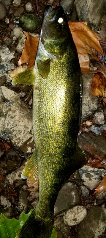 Any how, 1st spot proved fruitless. The weeds were a nightmare. Saw a couple fish but they've had lock jaw the last two weeks in this area. Very lethargic and, at best, just nipping tails on my soft plastics. Spent an hour and left. 2nd spot was better. The wind was honking but the weeds and leaves were very tolerable to almost non existent. Worked a good stretch of water and managed 2 walleyes in 45 min. Nothing huge. Just nice, healthy aggressive fish. One taped out at 23. The other at 21". Spent a bit longer trying for my limit but it wasn't meant to be. All on soft plastics. All released. Pics below. I also hit the river on Sunday during daylight hours. Managed 4 or 5 smallies to 16" and a sprout striper. I really had to work for those fish. No pics as I was wading. If it ain't a trophy I'm not risking a phone in the drink! Lol. See many of you Saturday morning.